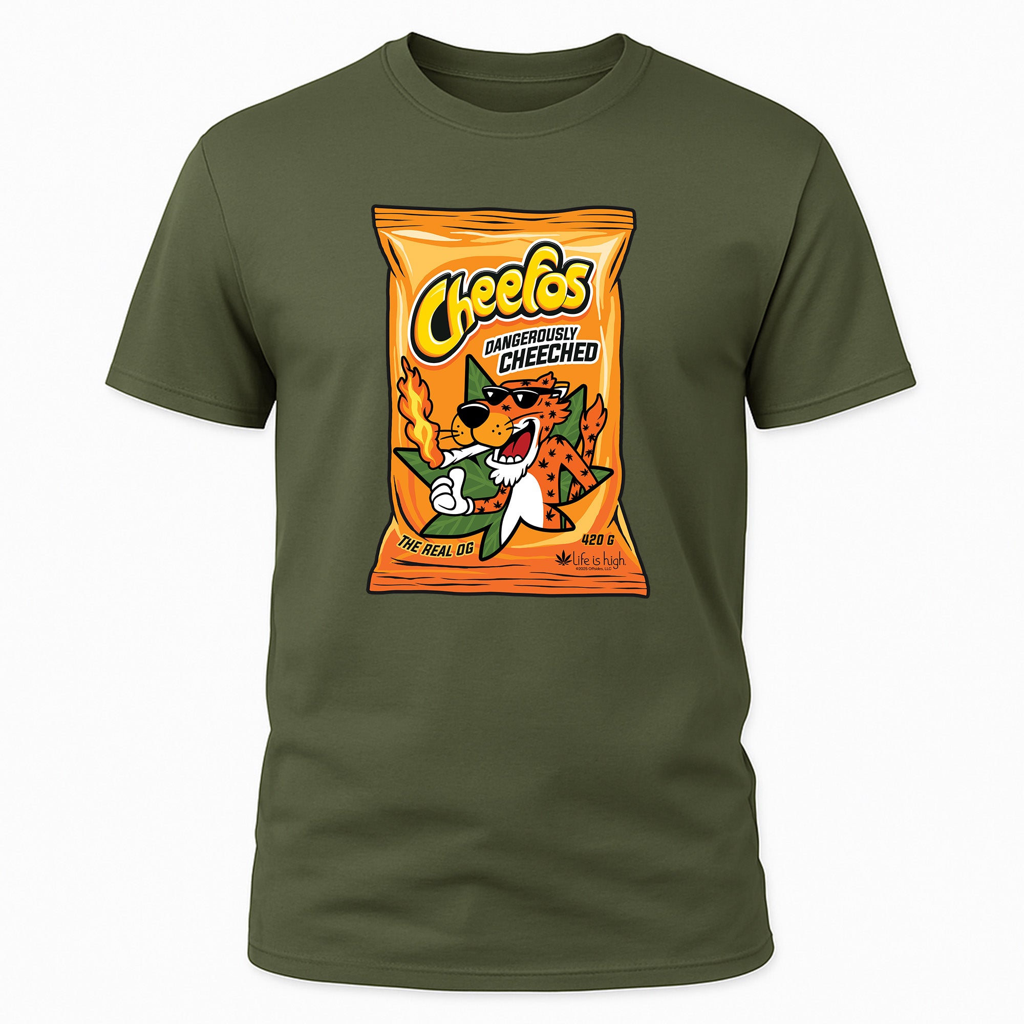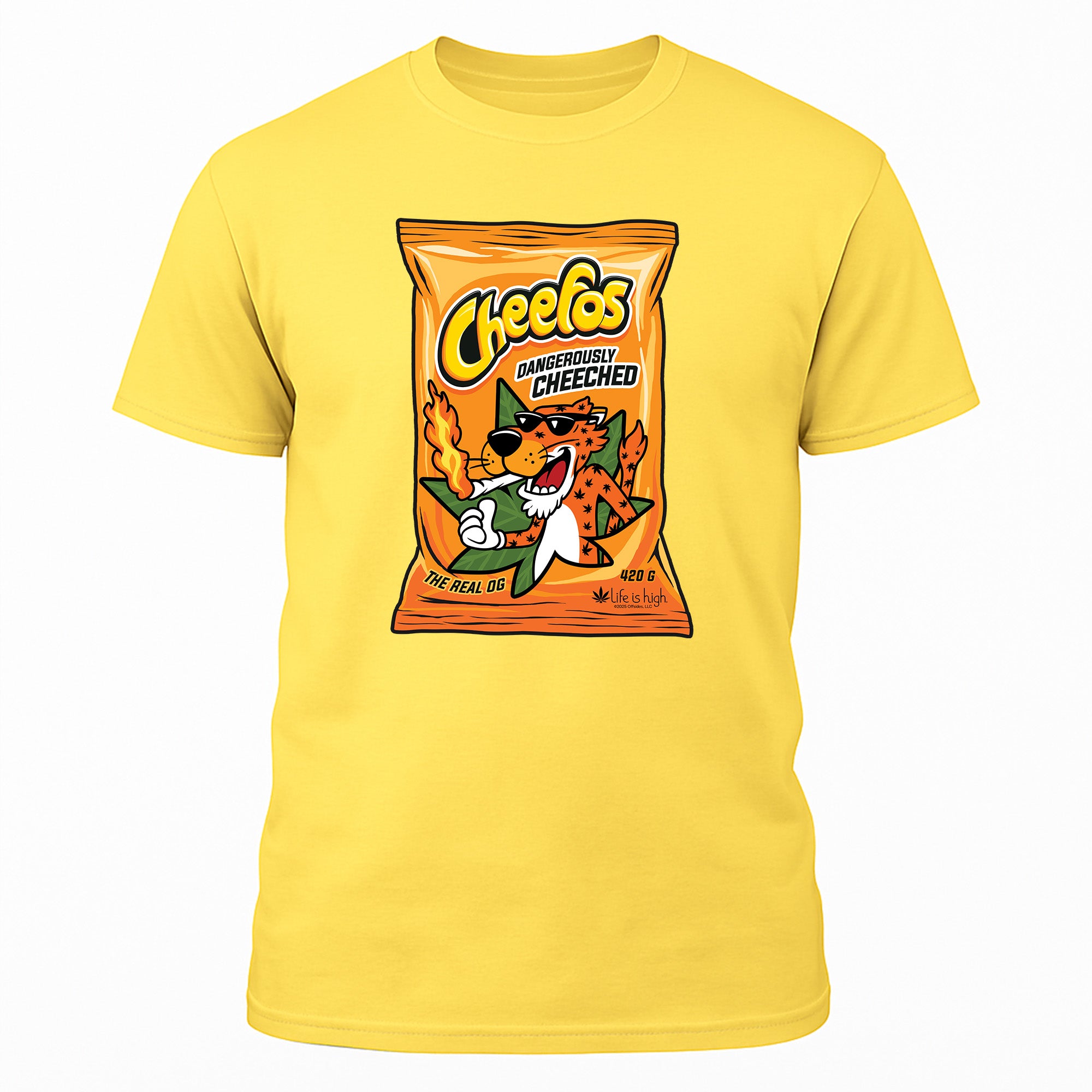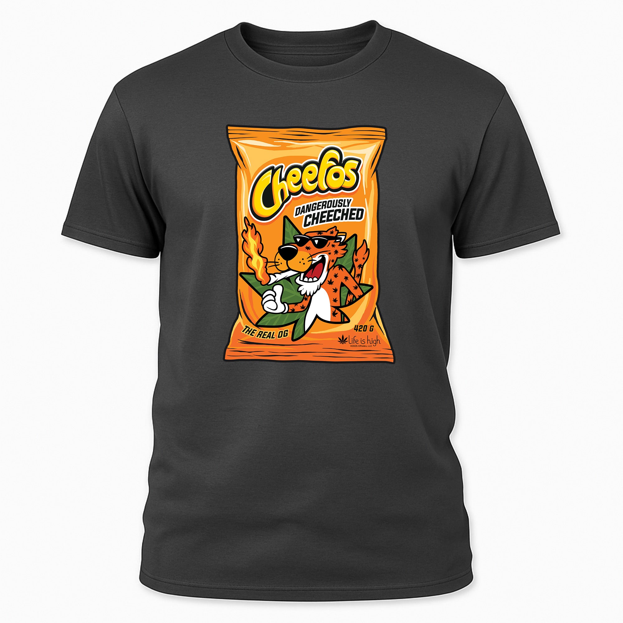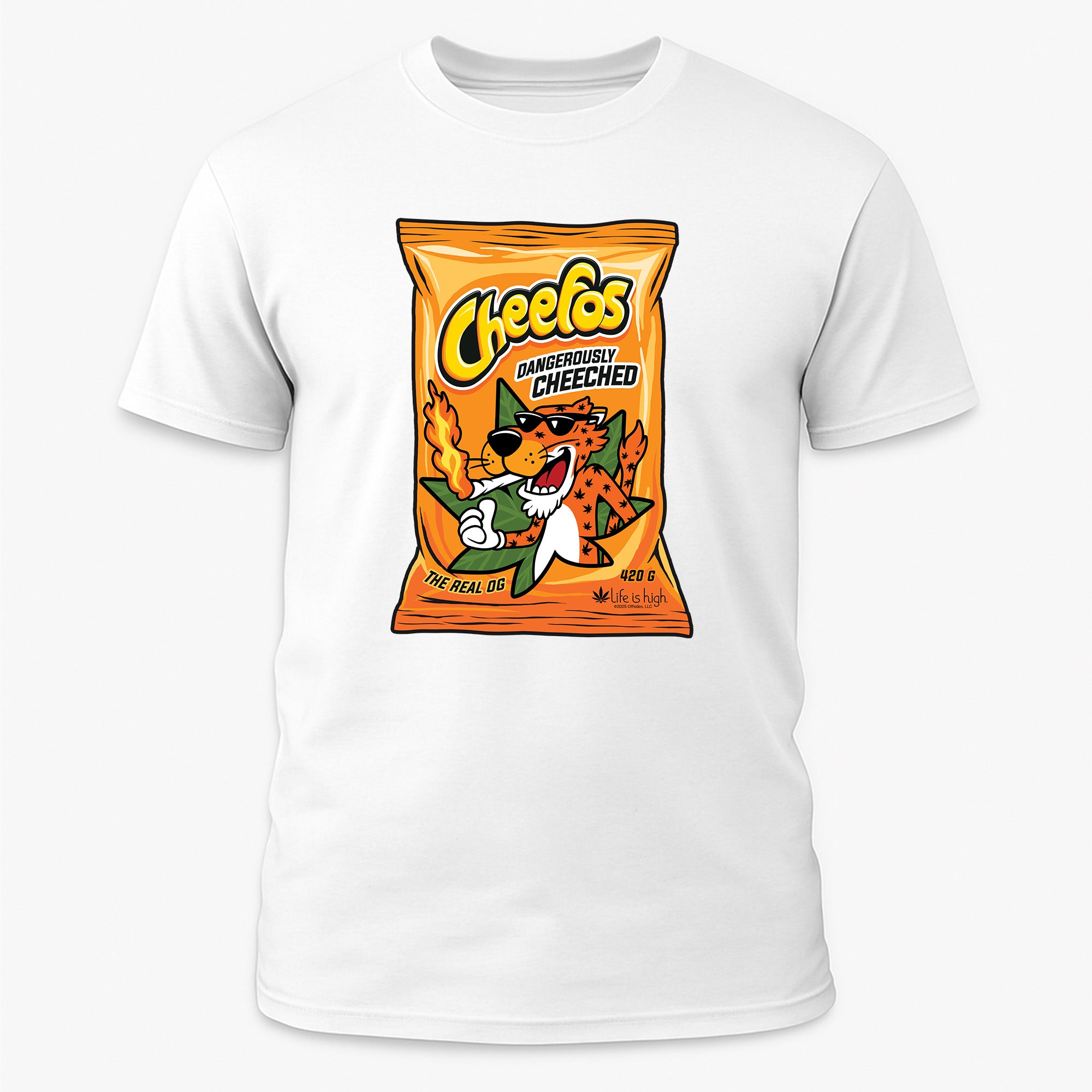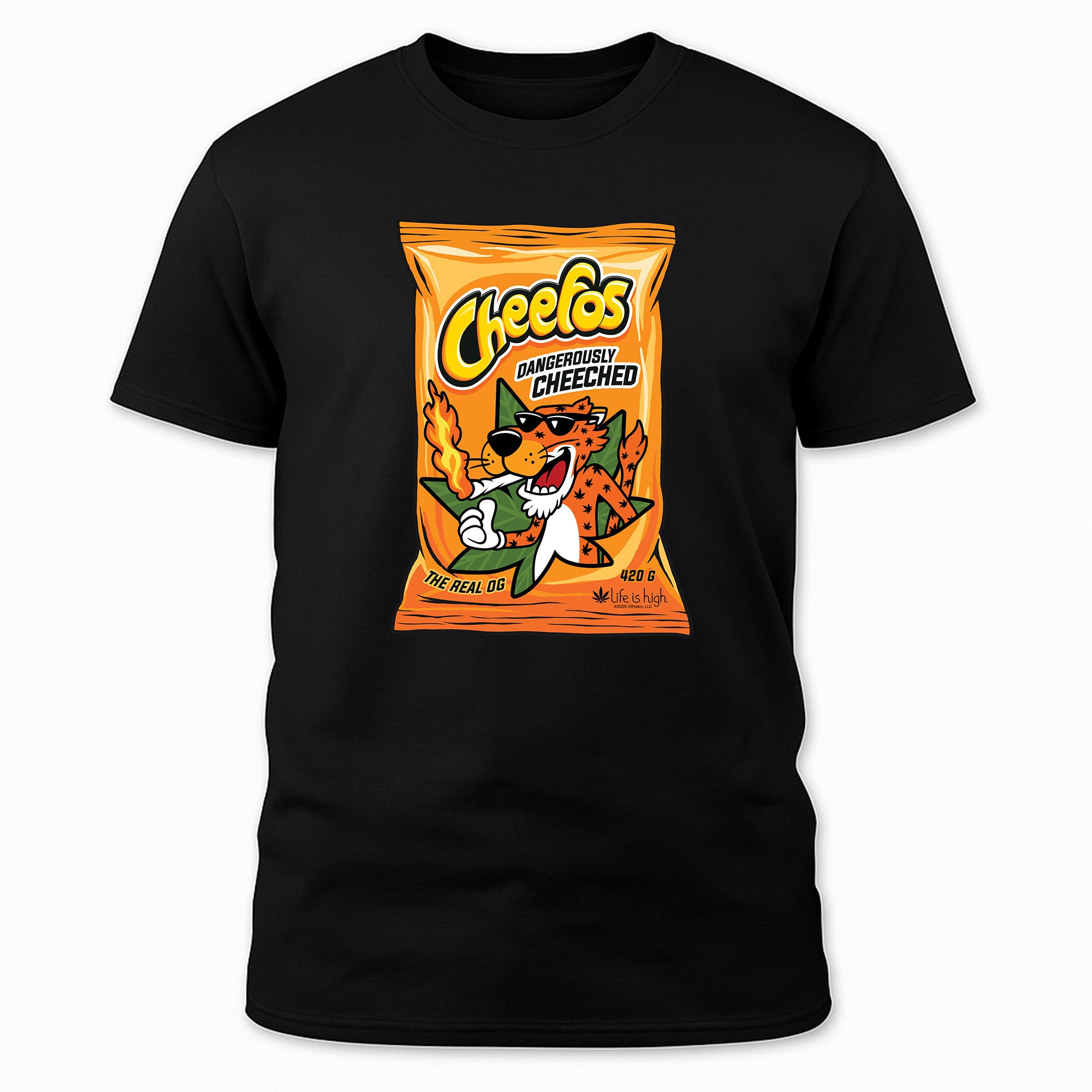 Grab a bag and a laugh — the Cheefos tee is for those who know the munchies are a sacred ritual. Bold, witty, and made from ultra-soft cotton, this shirt hits the perfect blend of comfort and humor. Wear it loud, wear it proud — and don’t forget to share (the snacks, not the shirt).
